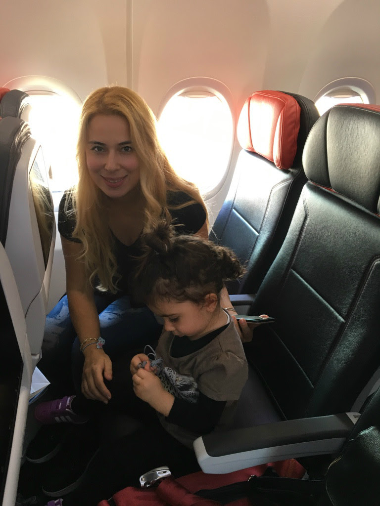 Yolculuk güzel geçti. Üçlü koltuk bizimdi, Öykü kalkışta uyudu, yemek yedik, derken uyandı sonrasında biraz uğraştık ama hakkını yemeyelim beş saat uçak yolculuğu için hiç fena değildi Öykütoş (maşallah :)